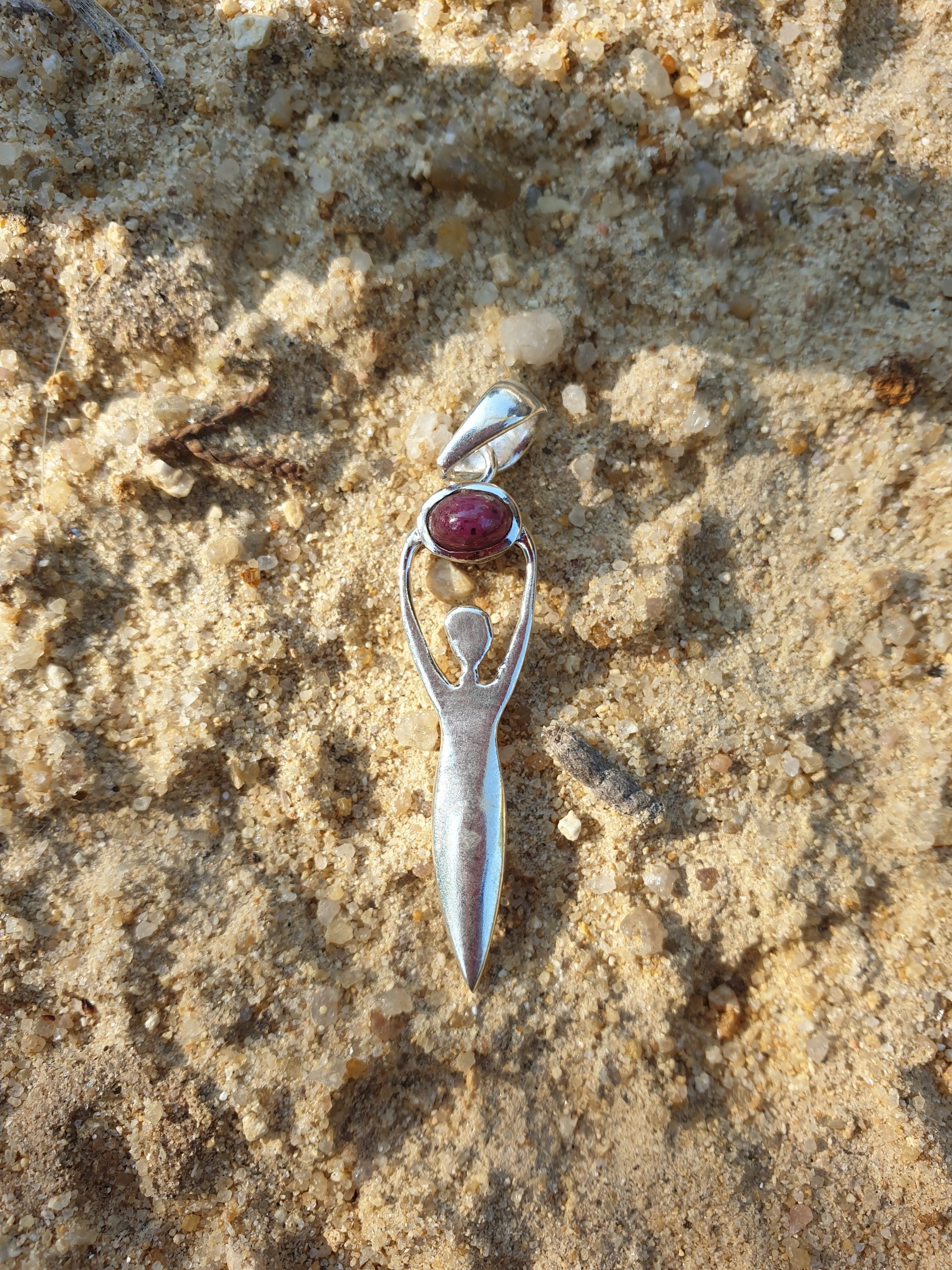 Colgante mano MADRE TIERRA con cabujón central de RUBÍ y montura en plata de ley 925.