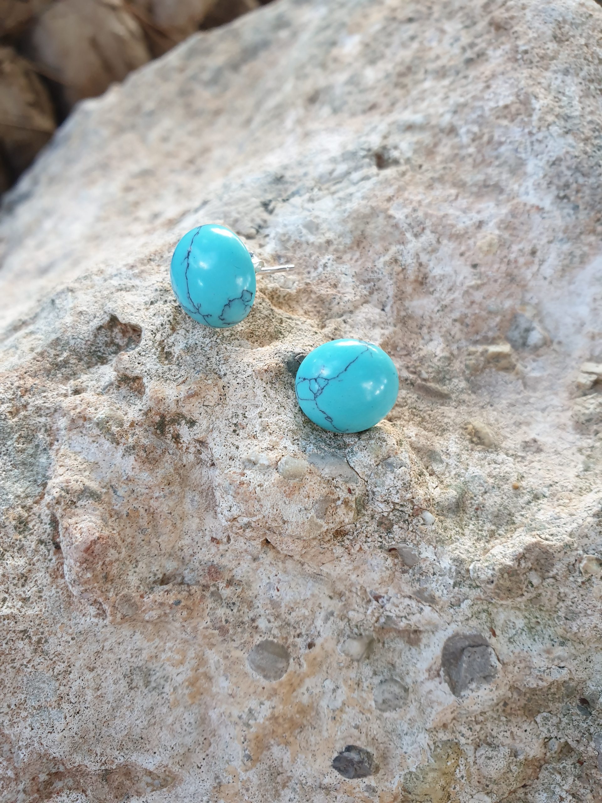 Pendientes Plata de Ley 925 media bola Turquesina