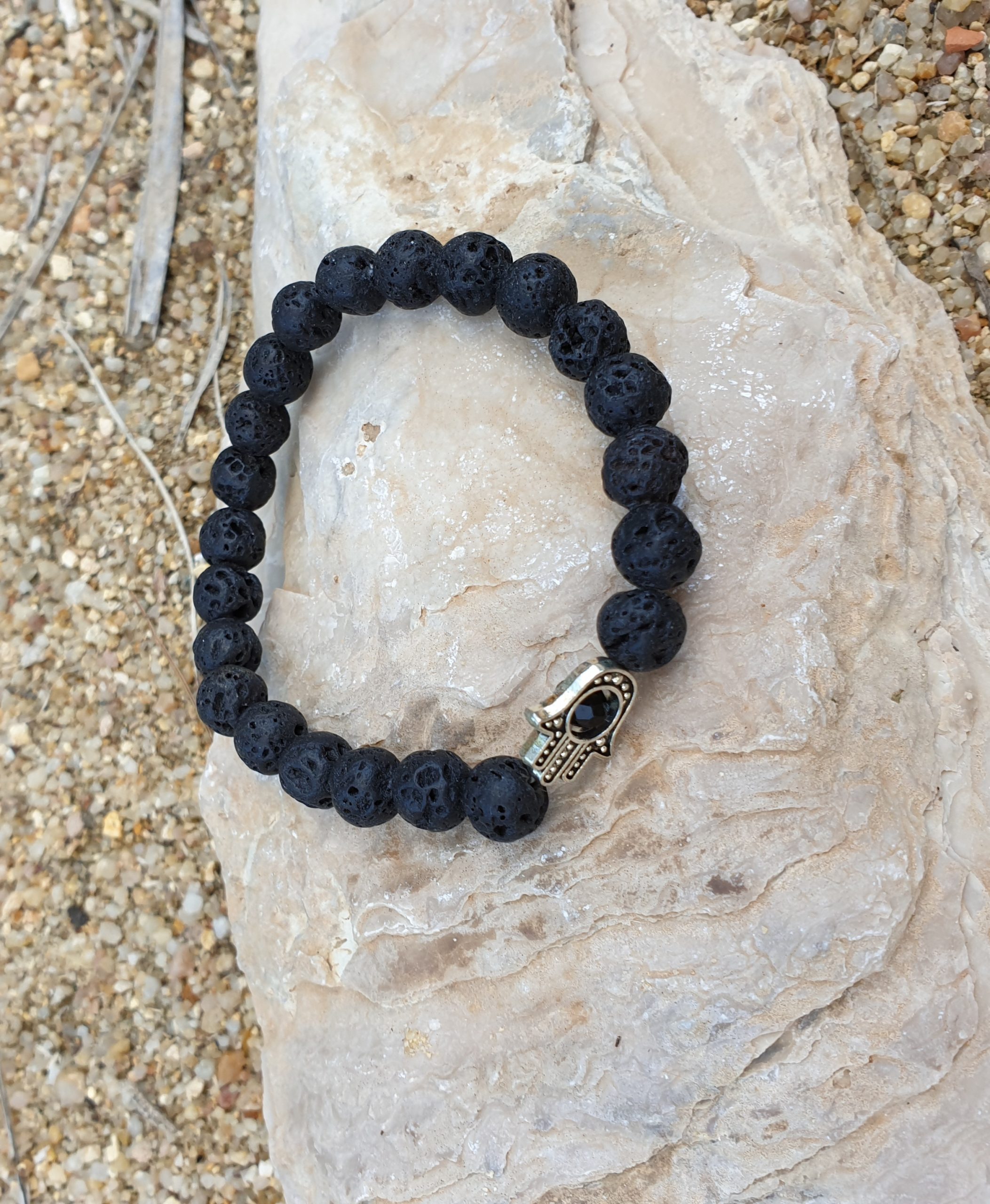 Pulseras con bolas piedras de Lava roca volcánica 8 mm, talla ajustable.